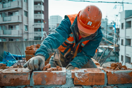 A skilled mason is expertly laying bricks to create a sturdy and reliable structure that will last for years. Generative AI
