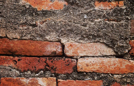 Old brick wall of an abandoned house background texture with free blank copy space for text.