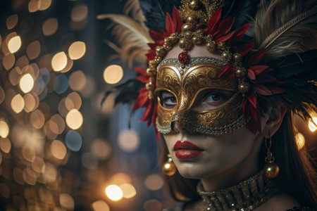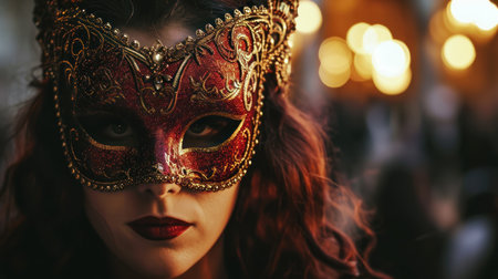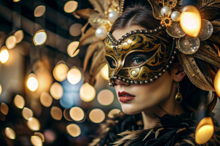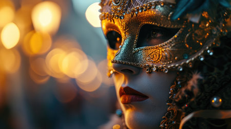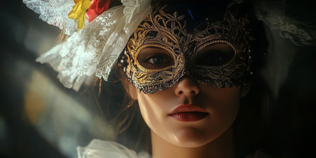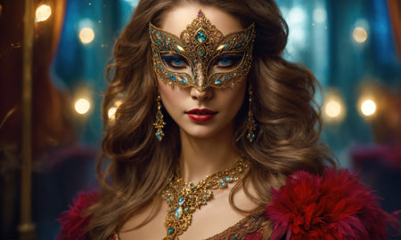 Mystical Elegance of a Glamorous Woman Wearing a Mask at the Enchanting Venice Carnival Event