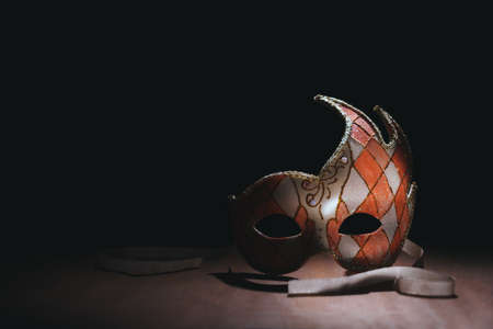 Venetian carnvial mask on a wooden background / high contrast image
