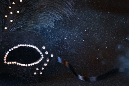 Image of black elegant venetian mask on glitter background. Shiny overlay