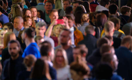 Crowd of anonymous people walking on the city street