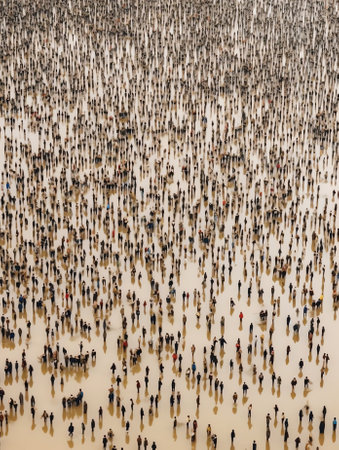 Generative AI : Aerial view of people worshipping at Global Muslims Congregation in Tongi Dhaka Bangladesh