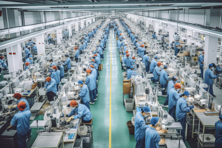 manufacturing process in a Chinese modern factory, including assembly lines, quality control, Generated with AI