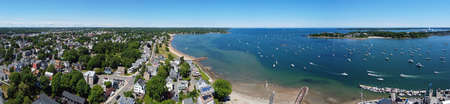 Historic village on Great Neck and Pavilion Beach aerial view at Ipswich Bay in town of Ipswich, Massachusetts MA, USA.