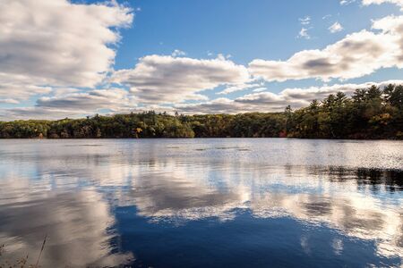 Dennis, Massachusetts, USA – November 10, 2019: Scargo Lake overlooks the hilltop in Dennis Massachusetts on Cape Cod.