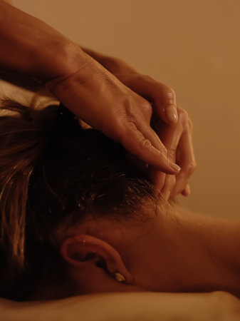 Craniosacral Therapy or CST Massage of Woman’s Head