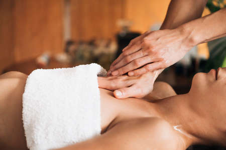 Masseur doing massage on woman body in the spa salon. woman relaxed. Beauty treatment concept.