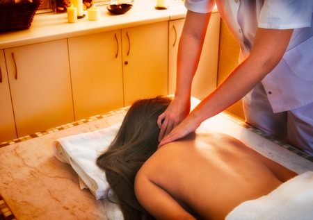 Pretty young woman having a massage in wellness center