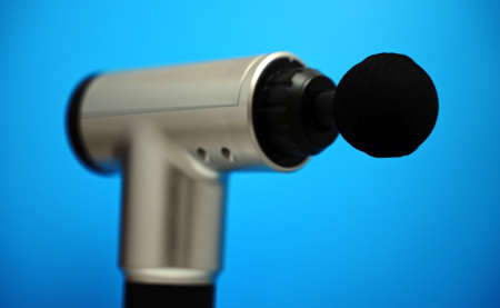 Massage back hardware. A percussion massager. The patient is lying on the massage table. High quality photo
