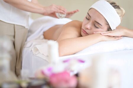 Young atractive female in massage salon is having beauty and healthcare procedures