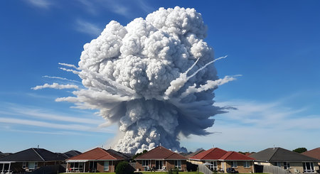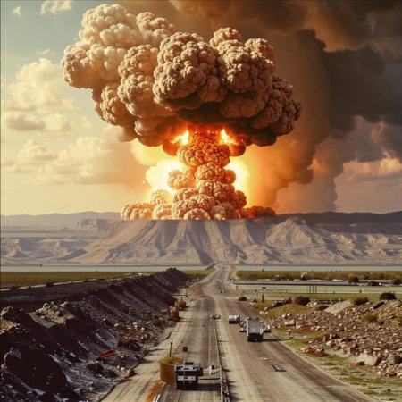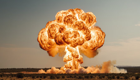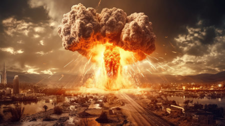 Captivating image capturing the devastating impact of a nuclear explosion. Illustrates the destructive power of atomic energy.