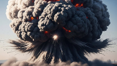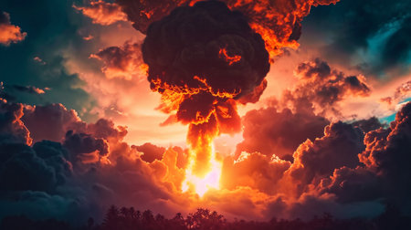 Dramatic Mushroom Cloud Rising Against the Sky, Symbolizing Destruction and Chaos of War Events
