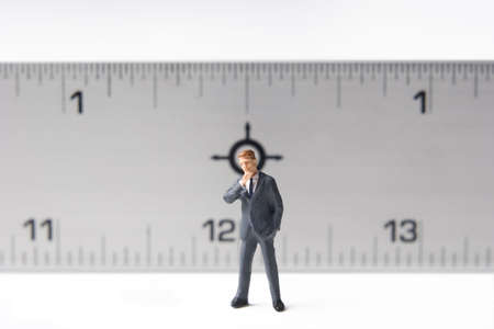 Miniature people : Businessman standing on the ruler. Image use for business concept.