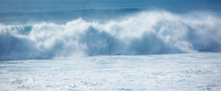 Powerful wave breaking in deep blue ocean