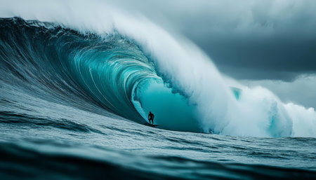 A colossal wave, a teal masterpiece, dominates the ocean. Its power and beauty are captivating.