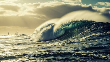powerful ocean wave breaking, clean renewable energy background
