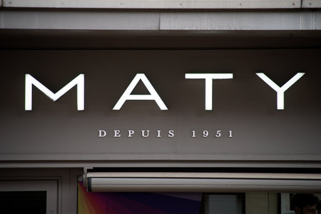 Colmar - France - 14 March 2021 - Closeup of Maty sign on a jewelry store front in the street