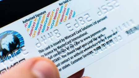 Aschheim, Germany -27 June 2020 : Blocking Payoneer cards, Wirecar company bankruptcy. Issuing Cards from Wirecard Card Solutions