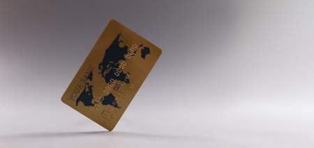 Credit plastic card isolated on black background. Online payment. Cash withdrawal. Business financial operations concept. Shopping sign. Copy-space mockup advertising