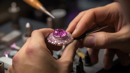 A close-up of an artisan's hands crafting fine jewelry, demonstrating their expertise