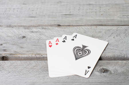 Four aces against wooden background