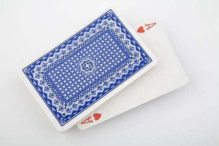 close up of playing cards poker game on white background