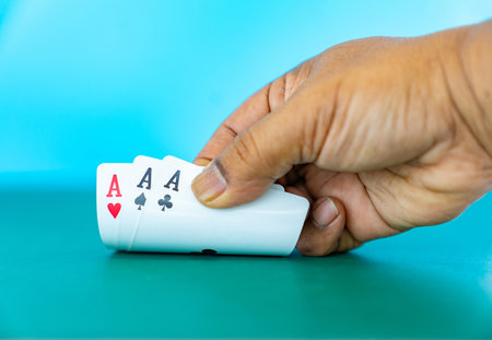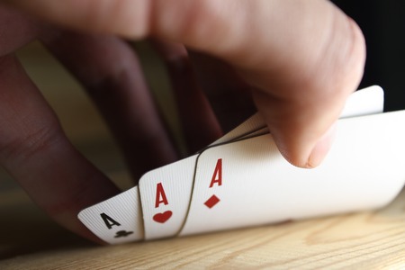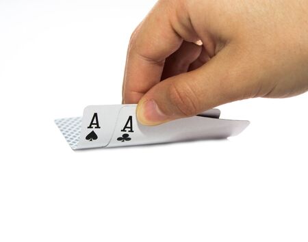 Two Aces Playing Cards in Male Player Hands.