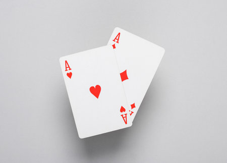 Ace of diamonds and hearts on a gray background. playing cards