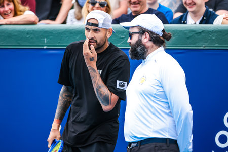 Tennis players standing and talking with their coaches on the tennis court during the daytime