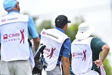 KUALA LUMPUR, MALAYSIA - October 11: Caddies watching the ball at tee box during 1st round of CIMB CLASSIC 2018 at TPC KUALA LUMPUR, KUALA LUMPUR, MALAYSIA on October 11, 2018.