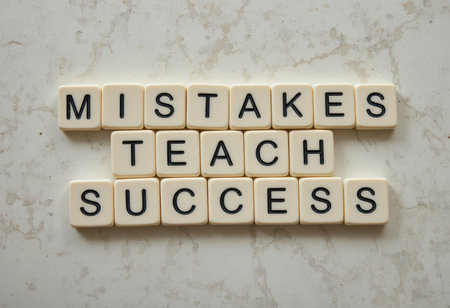 A motivational arrangement of letter tiles featuring the phrases Mistakes Teach Success. This image emphasizes the importance of learning through errors for personal development.