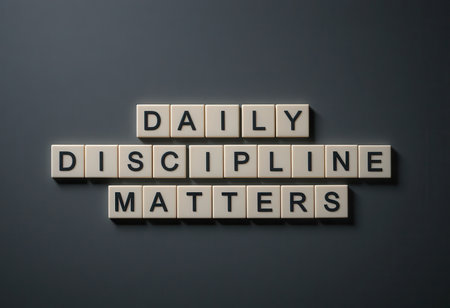 This image features the motivational phrase Daily Discipline Matters creatively arranged with wooden tiles against a dark background, perfect for inspiring personal growth and success.