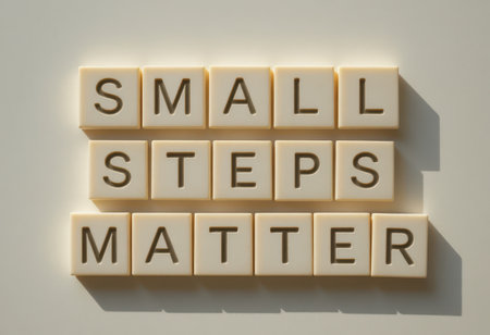 The image showcases a motivational message that emphasizes the importance of taking small steps in personal growth. Inspiring visual for various uses.