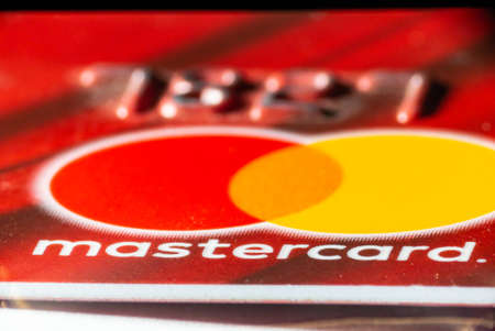 MINSK, BELARUS - July 23, 2020: Mastercard logo on credit card closeup