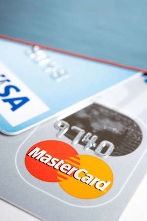 LONDON, UK - CIRCA AUGUST 2015: MasterCard and Visa credit cards