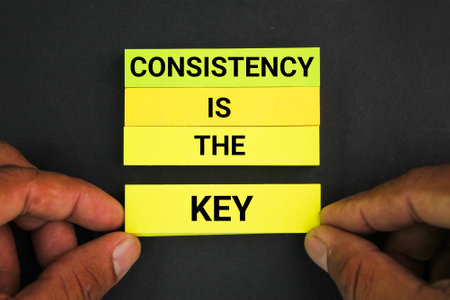 colored paper with the words CONSISTENCY IS KEY. consistent self-education concept