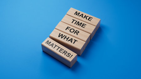 Important thing symbol. wooden blocks with words Make time for what matters.Business and important thing concept. Copy space.3D rendering on blue background.
