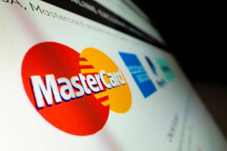 BELGRADE, SERBIA - MARCH 9, 2020: Mastercard web site on computer screen. Mastercard is an American multinational financial services corporation founded at 1966.