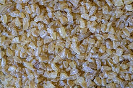 Macro view of bulgur (cracked wheat) grains.