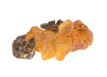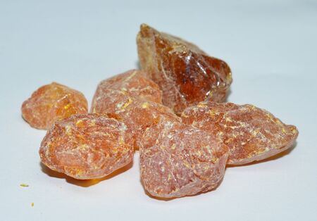 transparent resin wood, dammar close-up on a white background