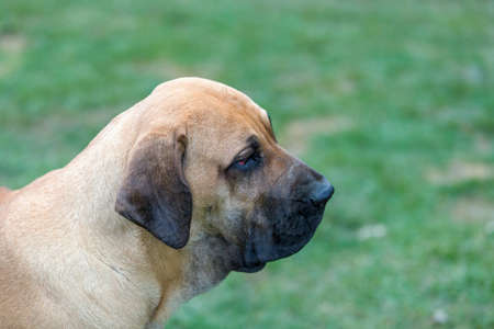 big young guardian dogs, female of Fila Brasileiro, Brazilian Mastiff, outdoor on green grass