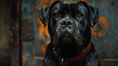 Cane corso. Beautiful purebred black dog looking to the camera close up