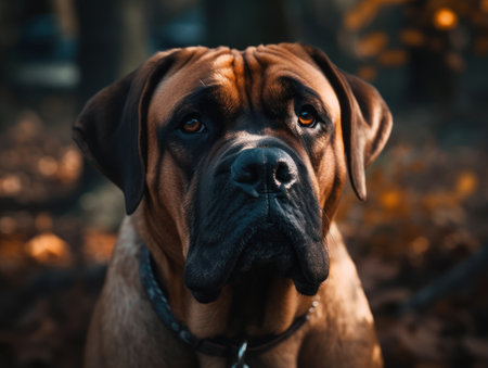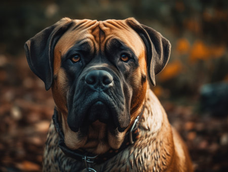 Portrait of Tosa Inu on a nature close up cropped photo. Ai generative art