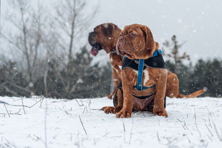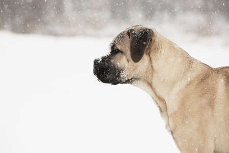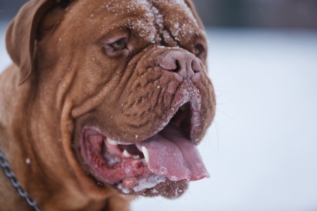 Portrait of Bordeauxdog, is a large French Mastiff breed at winter time