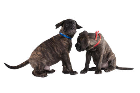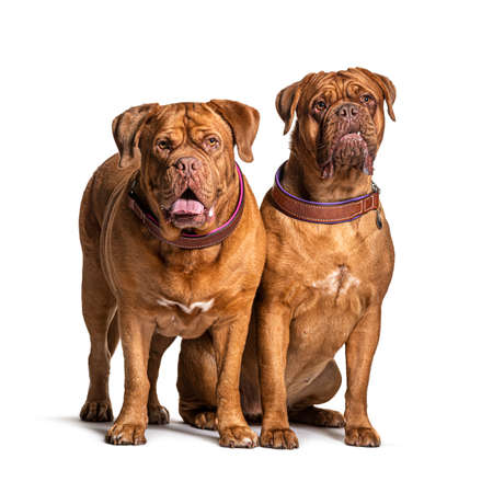 Couple of Dogue de Bordeaux sitting together, isolated on white