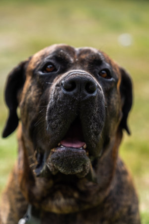 Six-year-old male Italian Cane Corso breed of classic color close-up portrait