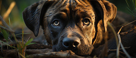 Sad look of the huge dog. Cane corso dog looking at camera. Themes loyalty, lost or desire.
