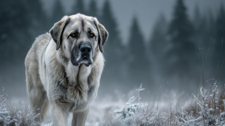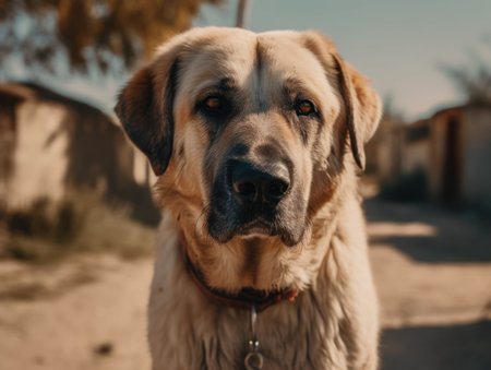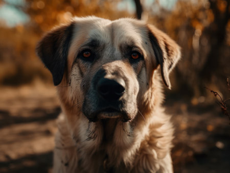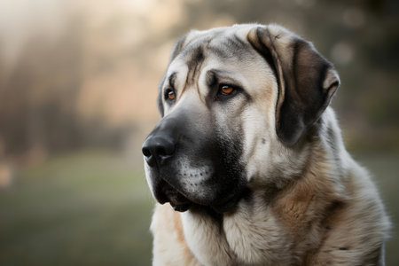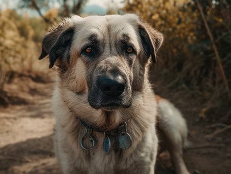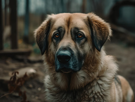 Large Anatolian shepherd dog with a pensive expression posing outdoors