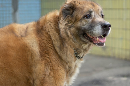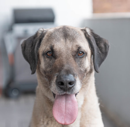 Happy Anatolian shepherd dog looking away with open mouth and tongue out